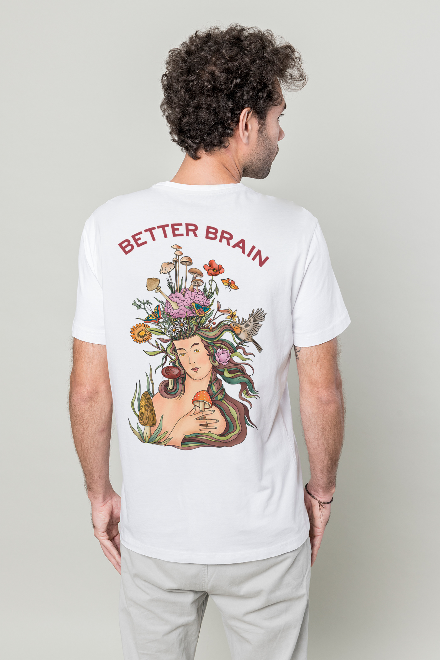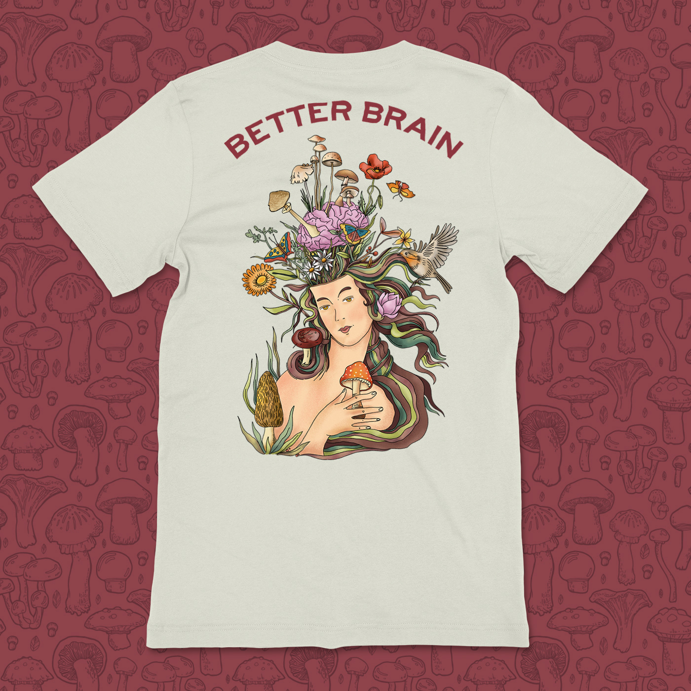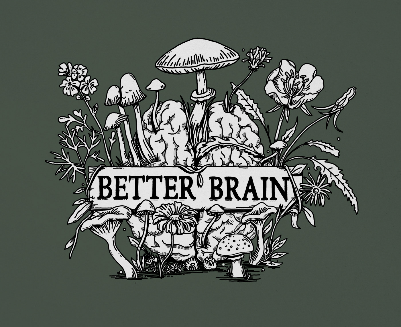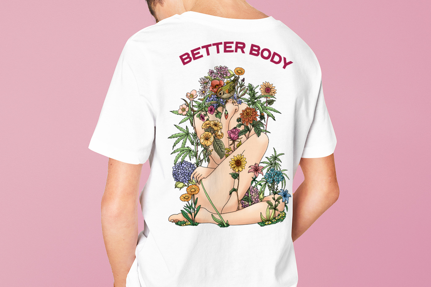 T-shirt illustrations for a mushroom and cannabis-based food supplement brand